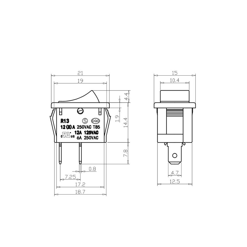 Seria przełączników kołyskowych R13-13 do sprzętu biurowego to kompaktowy i wszechstronny przełącznik kołyskowy zaprojektowany specjalnie dla małych urządzeń i sprzętu biurowego. Kompaktowa obudowa umożliwia łatwą integrację panelu z urządzeniami precyzyjnymi. Obudowa wykonana jest z wysokowytrzymałego, trudnopalnego tworzywa sztucznego, zapewniającego trwałość w warunkach częstego użytkowania i wysokich temperatur. Siłownik kołyskowy jest ergonomicznie zaprojektowany, co umożliwia płynne przełączanie przy minimalnym wysiłku.